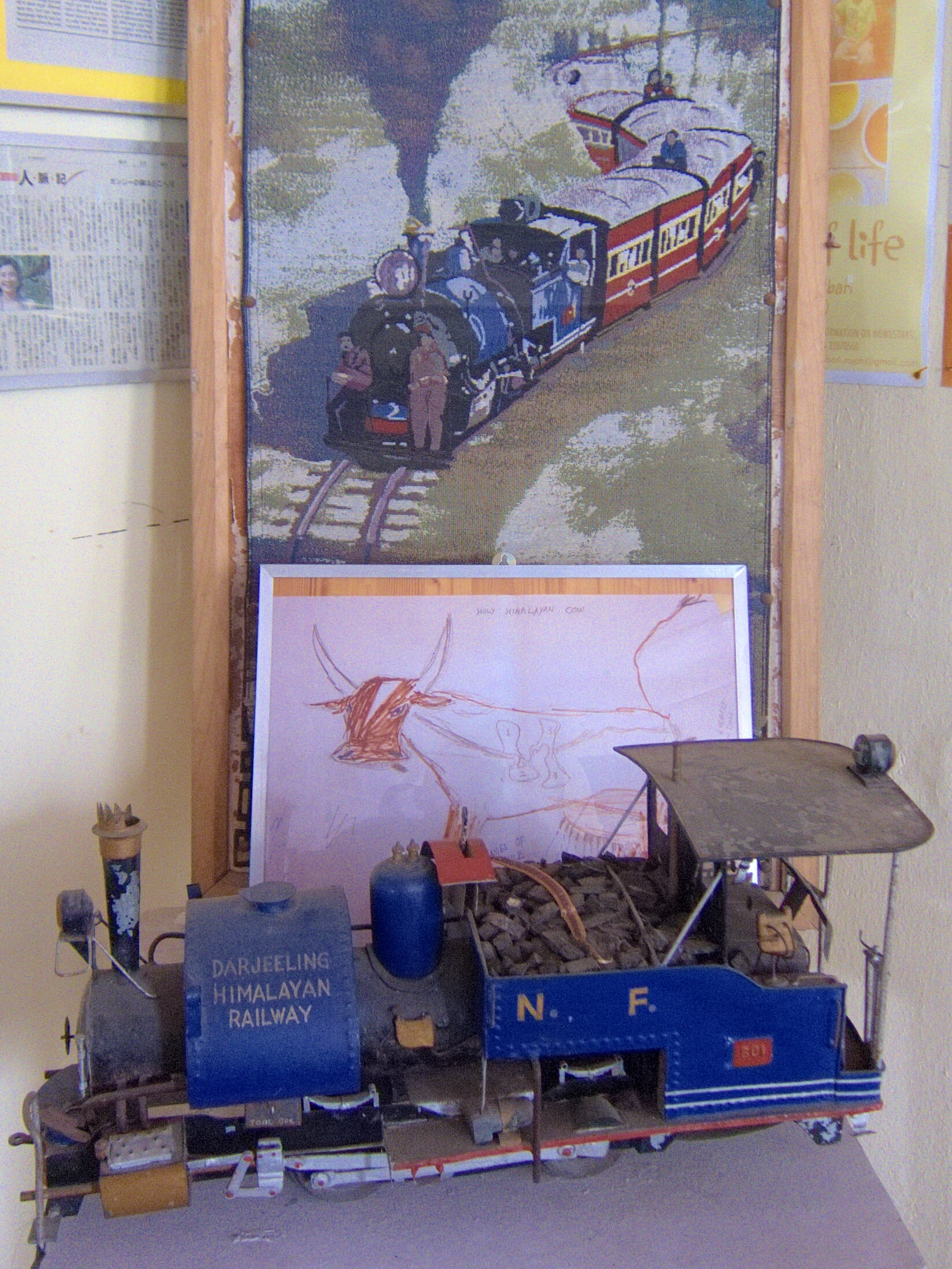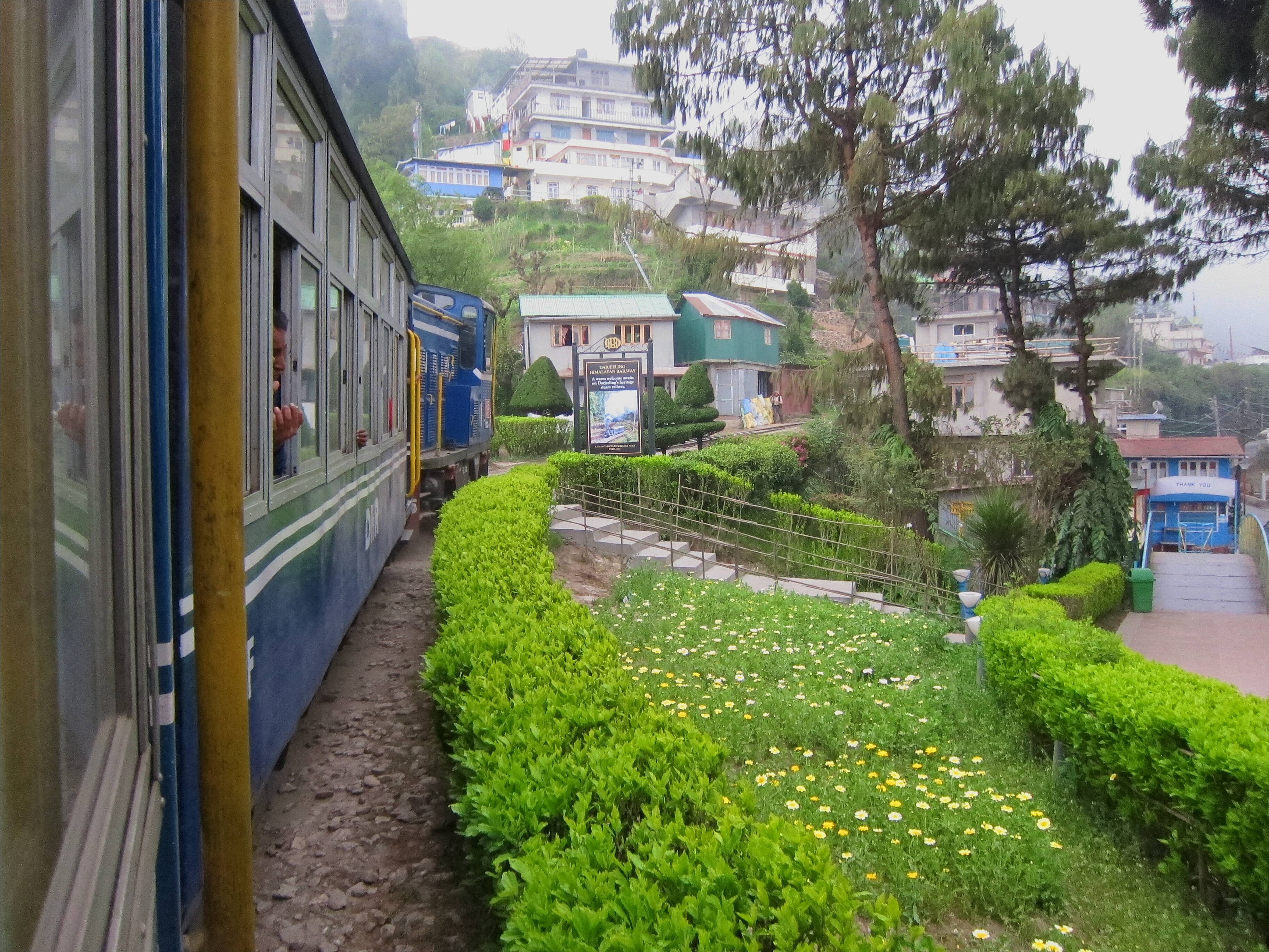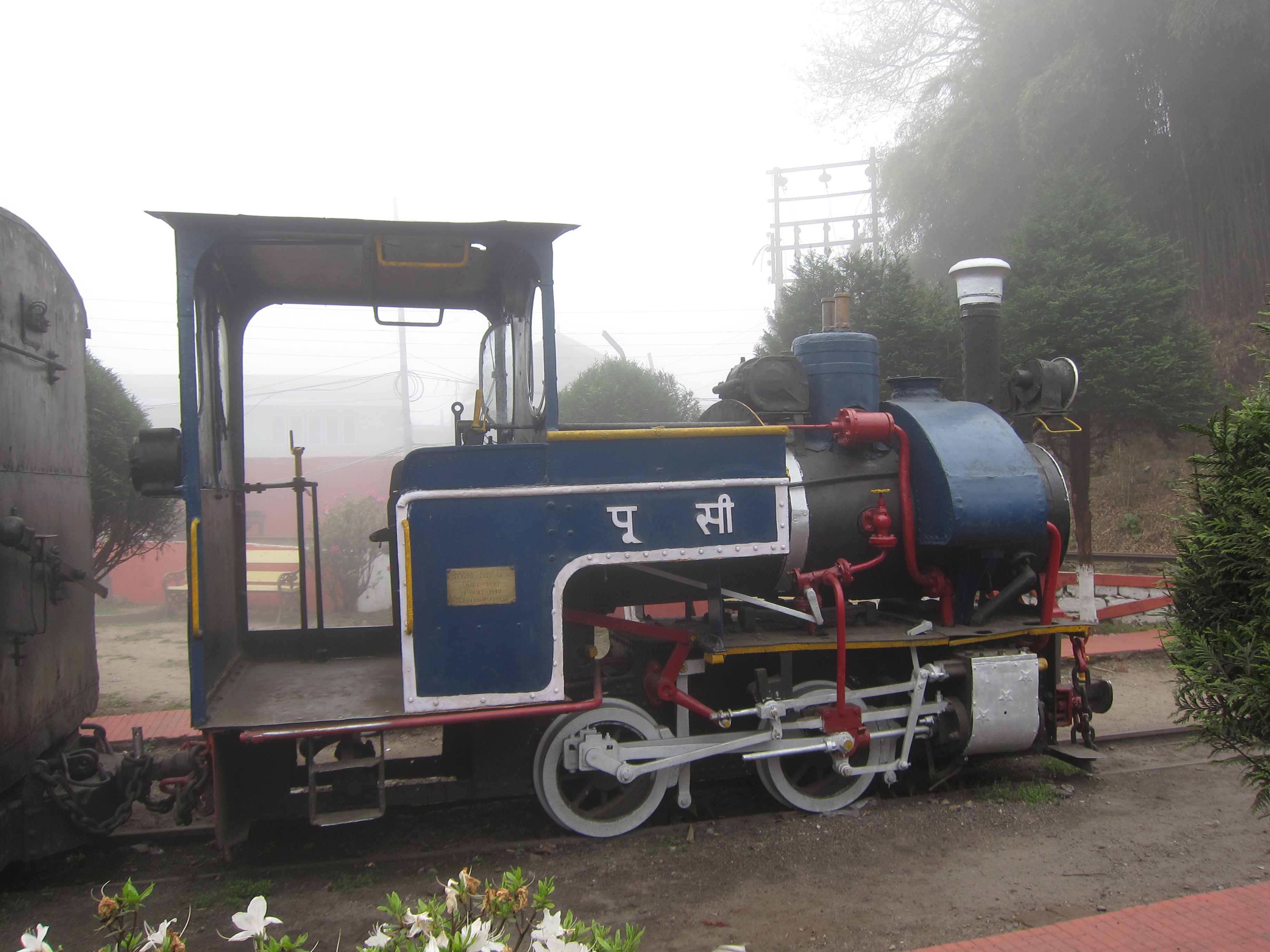 We stopped briefly at the mist-shrouded station of Ghum, where there is a small railway museum. I stepped off the train to snap some photos but scampered back into my carriage when I heard the whistle. At 2258 meters (7407 feet) elevation, Ghum is the highest railway station in India.